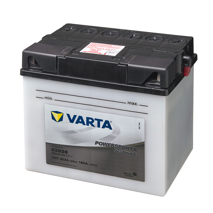 Zoekt u een betrouwbare startaccu voor uw voertuig? De VARTA Freshpack 53030 / 60-N30L-B loodzuuraccu heeft een capaciteit van 30 Ah en een spanning van 12 Volt. Perfect voor ATV's, grasmaaiers, motoren en quads. Direct uit voorraad leverbaar met 2 jaar garantie!